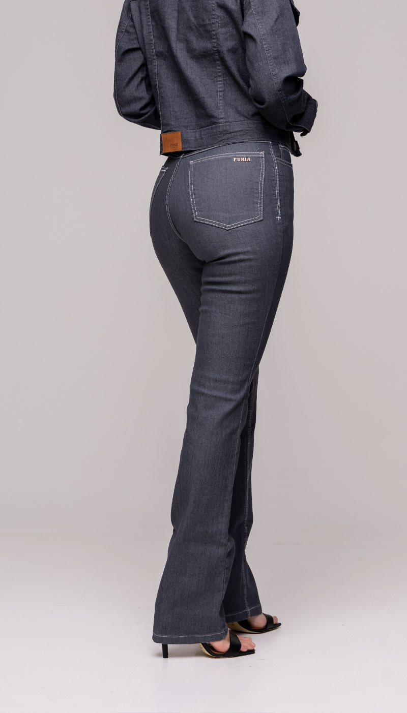 Nossa calça Jeans Bootcut Cinza com detalhes em puídos, é um jeans incrível que vai do elegante ao despojado Confeccionada em jeans de última geração, que proporciona alto conforto, acabamento perfeito ao corpo, é Anti-Pilling e não laceia. Possui cintura alta, dois bolsos traseiros, não possui bolso frontal e tem acabamento do joelho para baixo com o tecido mais aberto.