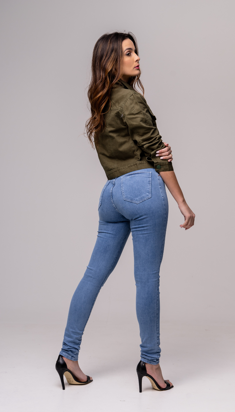 Nossa calça Jeans Skinny em cor clara é clássica, moderna e tecnológica. Confeccionada em jeans de última geração, que proporciona alto conforto, acabamento perfeito ao corpo, é Anti-Pilling e não laceia. Possui cintura alta, dois bolsos traseiros, não possui bolso frontal.