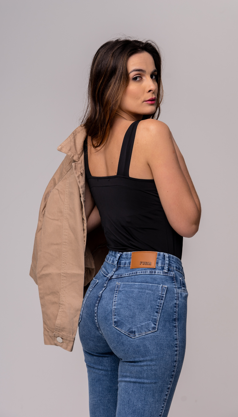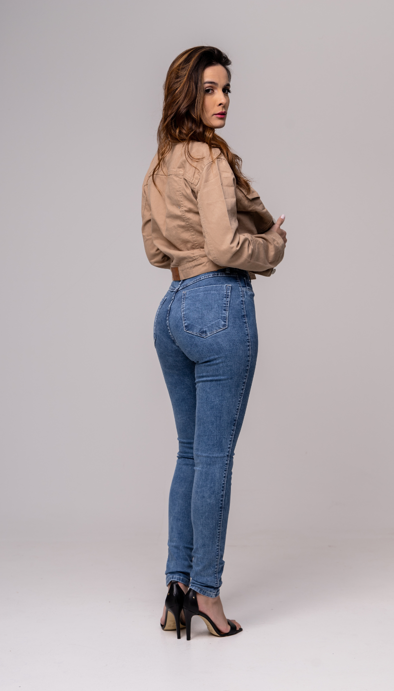 Nossa calça Jeans Skinny em cor intermediária é clássica, moderna e tecnológica. Confeccionada em jeans de última geração, que proporciona alto conforto, acabamento perfeito ao corpo, é Anti-Pilling e não laceia. Possui cintura alta, dois bolsos traseiros, não possui bolso frontal.